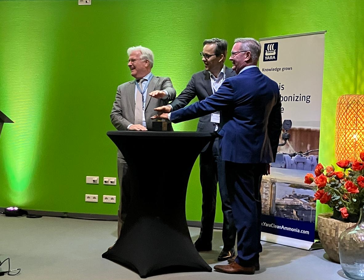 Met een druk op de rode knop openden burgemeester van Terneuzen Erik van Merrienboer, directeur Luc Cattoir van Yara en directeur Jan Robert Huisman van Evides Industriewater de nieuwe deminwater- en zuiveringsstraat. Beide straten zorgen ervoor dat Yara nog meer water kan hergebruiken en dat er minder stikstof in het Kanaal van Gent naar Terneuzen geloosd wordt. Van het afvalwater worden nu zelfs meststofkorrels gemaakt.